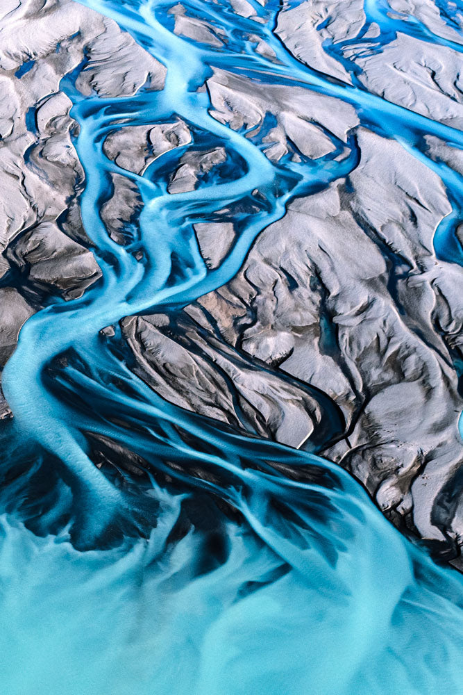 The braids of the Tasman River, at the foot of Aoraki (Mount Cook), move in diferent directions, but flow inexorably to their destination, Lake Pukaki.