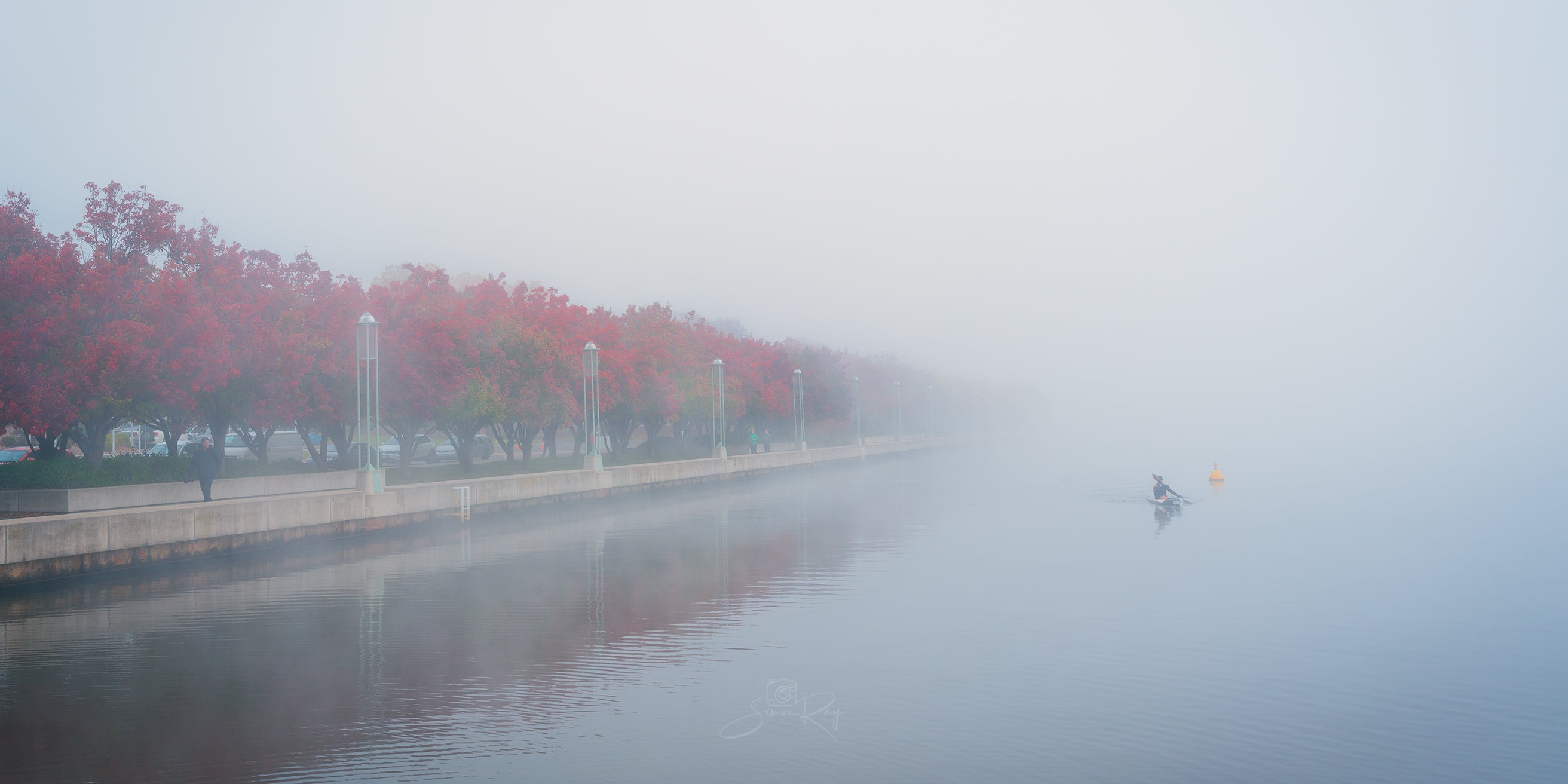 Autumn in Canberra can get quite foggy in the mornings, making navigation for paddlers and rowers on the waters of Lake Burley Griffin quite challenging!