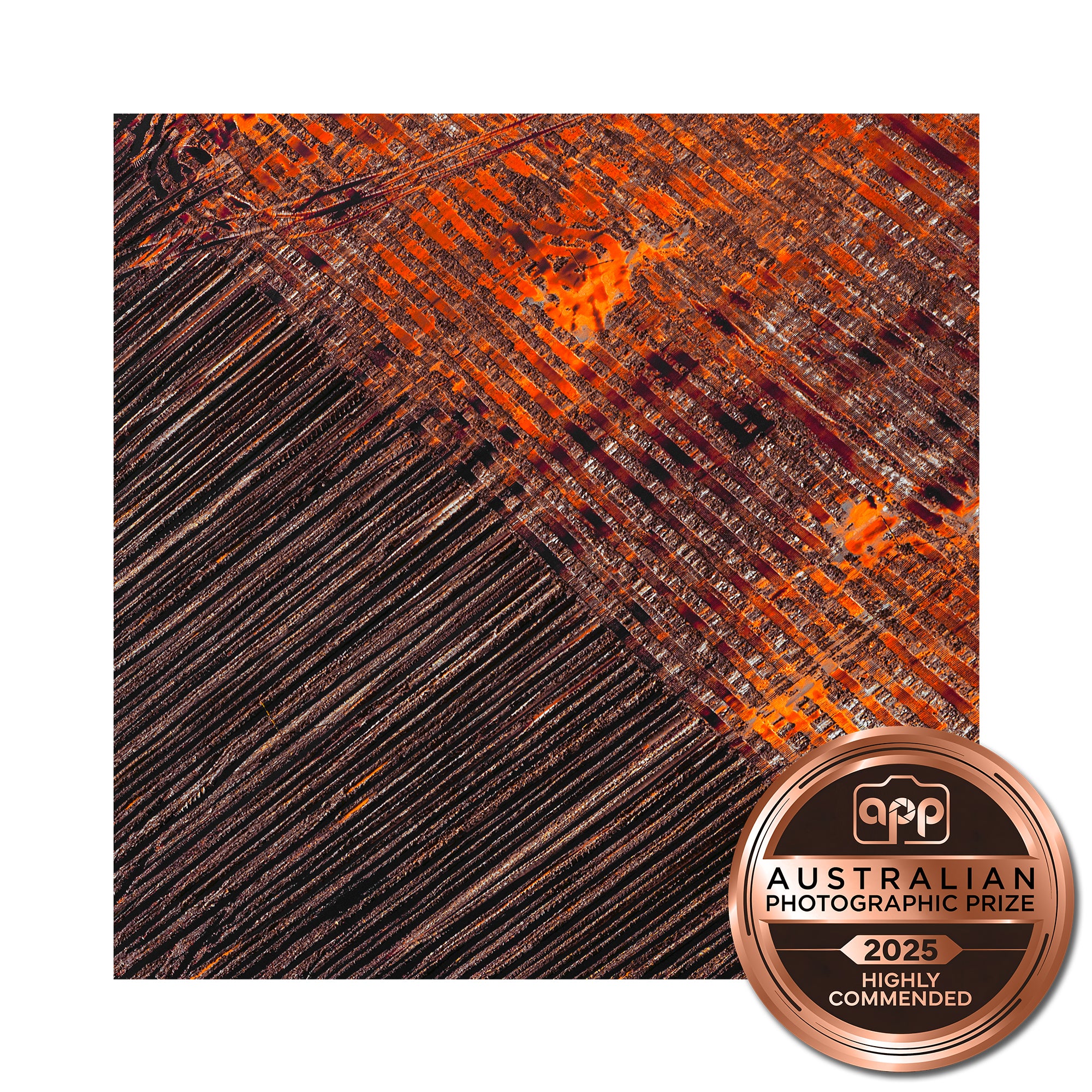 An abstract exploration of waste at a bauxite mine south of Perth. The intricate lines crosshatch the ground.